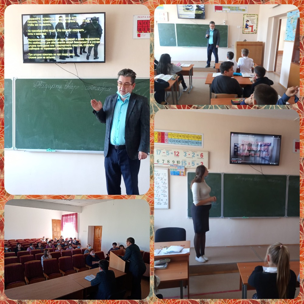 22 сентября в лицее проведены беседы и классные часы. Педагоги и лицеисты были ознакомлены с правилами безопасности и правилами поведения при ЧС (терроризм).
